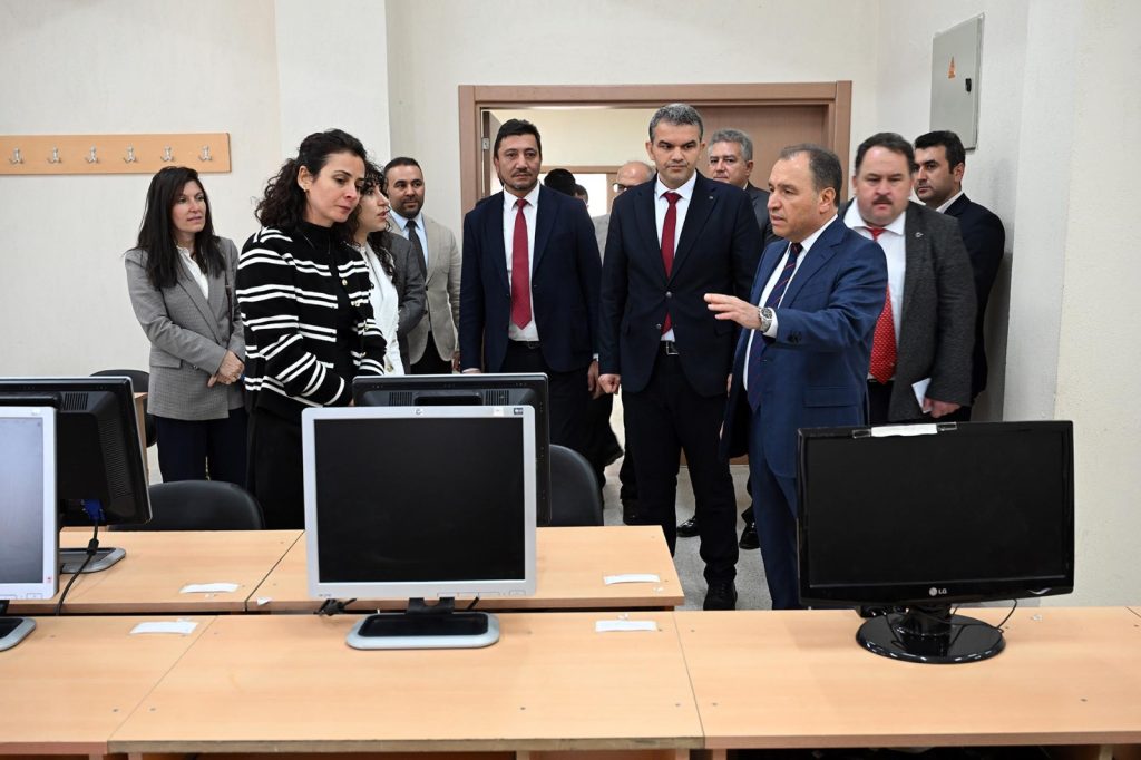 Programın devamında okulumuzda bulunan spor salonu, konferans salonu, bilgisayar laboratuvarı, aşçılık mutfağı, bankacılık-finans uygulama sınıfı, yapı laboratuvarı ve veterinerlik laboratuvarlarında incelemelerde bulunan Rektörümüz, yürütülen eğitim faaliyetleri hakkında detaylı bilgi aldı.