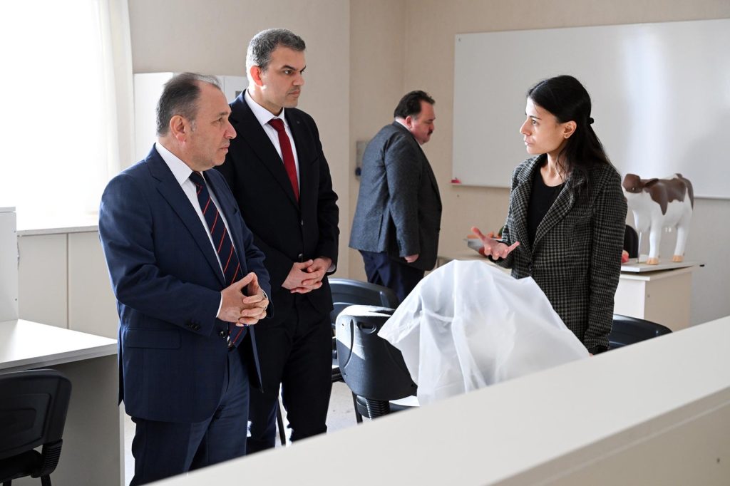 Programın devamında okulumuzda bulunan spor salonu, konferans salonu, bilgisayar laboratuvarı, aşçılık mutfağı, bankacılık-finans uygulama sınıfı, yapı laboratuvarı ve veterinerlik laboratuvarlarında incelemelerde bulunan Rektörümüz, yürütülen eğitim faaliyetleri hakkında detaylı bilgi aldı.