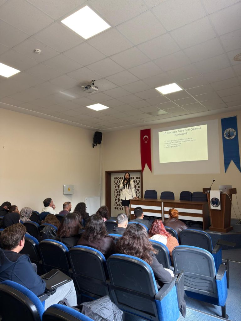 Programımız, Topluluk Başkanımız Amine Arpacı ve danışman hocamız Öğr. Gör. Mehmet Alper Şen’in açılış konuşmalarıyla başladı. Konuşmalarda girişimcilik ekosisteminin önemi ve proje temelli düşünmenin öğrenciler için sunduğu fırsatlar vurgulandı.