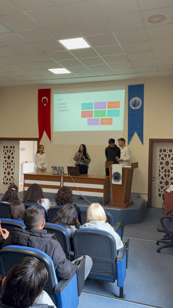 Bilgisayar Programcılığı bölümü 2.Sınıf öğrencileri tarafından “Teknoloji Bağımlılığı ve İnternetin Güvenli Kullanımı” konulu konferans düzenlenmiştir. Konferansta Bilgisayar programcılığı öğrencilerinin sunumları ile 9.sınıf lise öğrencilerine konuya ilişkin bilgiler verilmiş, sonrasında katılımcı soruları cevaplanmıştır.